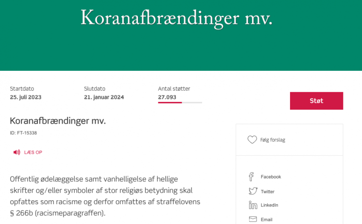 Borgerforslaget af 25. juli 2023 om, at koranafbrændinger skal være omfattet af straffelovens §266b, må betragtes som et rigtigt forslag, der fortjener opbakning.