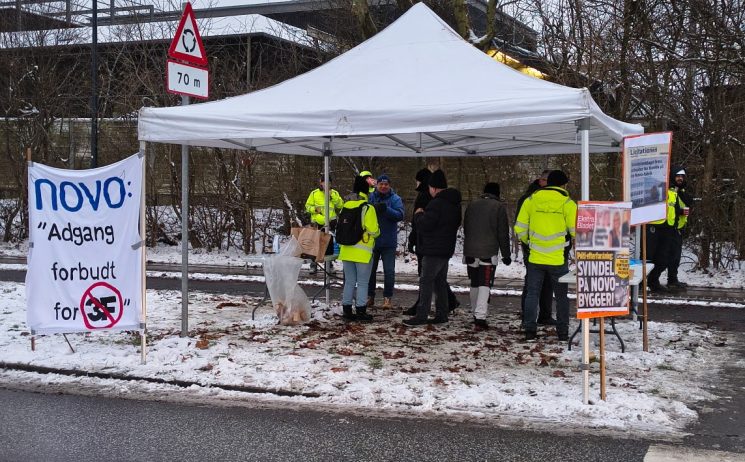 Tidligt onsdag morgen var en gruppe fagligt aktive mødt op foran Novo Nordisks byggeplads i Gentofte. Deres budskab var, at Novo skal tillade fagforeninger adgang til byggepladsen for at kontrollere arbejdsforholdene.