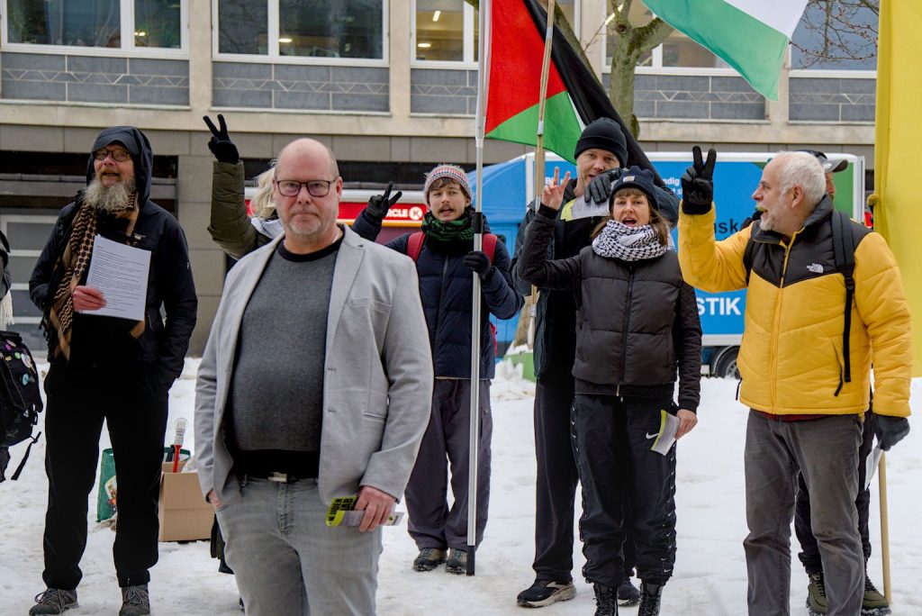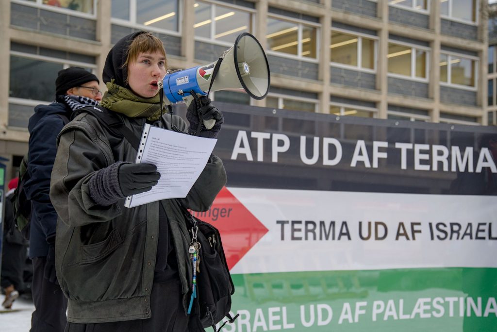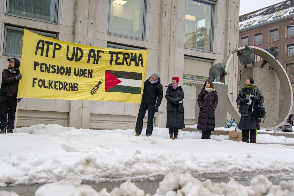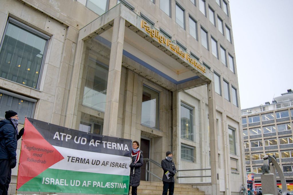 "Vi er mange 3F'ere, der ikke vil finde os i, at vores forbund 3F accepterer, at vores indbetalte ATP-pensionsmidler fortsat bliver investeret i våbenfabrikker", lød det ved en aktion ved 3F's hovedkontor i mandags. 3F's formand Henning Overgaard bliver anklaget for medansvar i ATP's investeringer i firmaer, der leverer våben til Israels folkedrab på palæstinenserne.