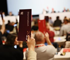 – Vi har ingen interesser i at forberede en krig eller i at sætte demokratiet ud af kraft, som regeringen lige har gjort, når det handler om krigsproduktion. Det er ret vildt, sagde Per Nielsen, der er på kongres for første gang:
