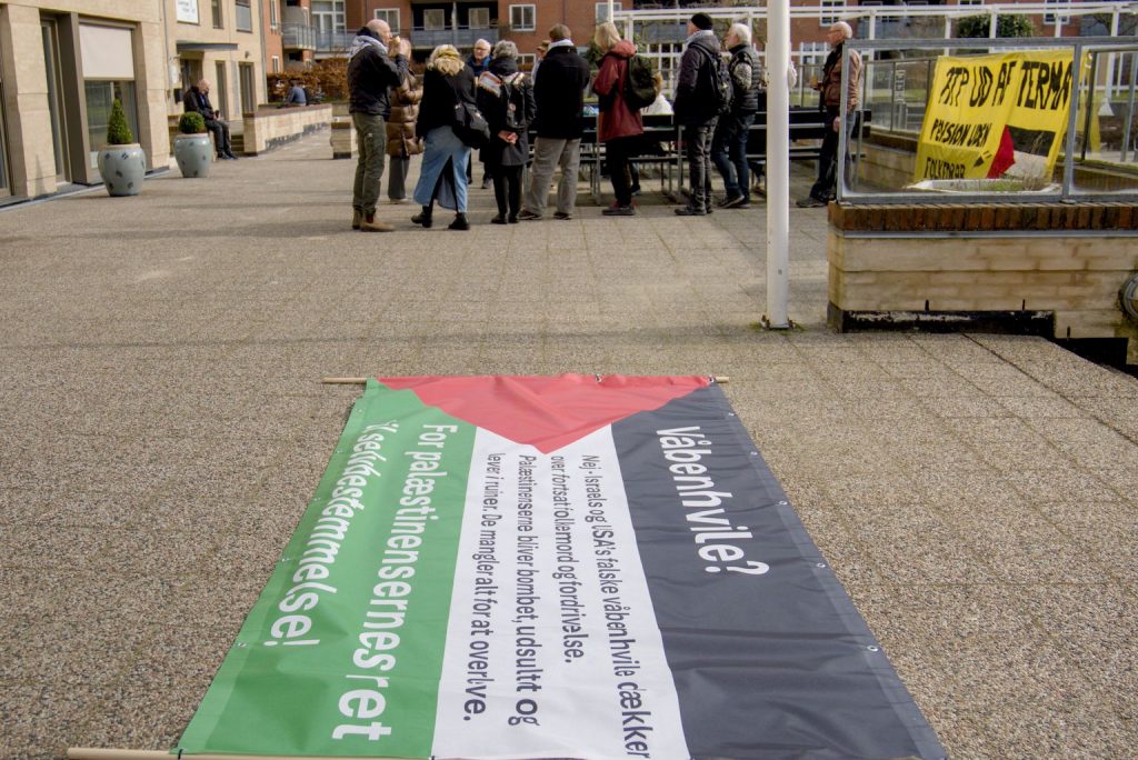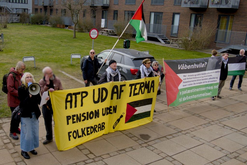 Aktion ved Finansforbundet: Fagtoppen skal gå imod ATP’s investeringer i folkemord
