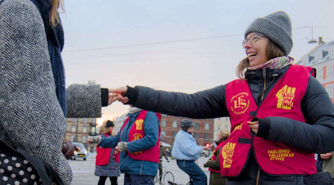 ‘Mens de offentlige overenskomster har stået på, har medlemmer været med til at klappe de faglige forhandlere ind til møder med arbejdsgiverne. Og de har flere gange om ugen – i sne og frost – stået på centrale pladser i København og gjort forbipasserende opmærksom på deres krav til OK26.