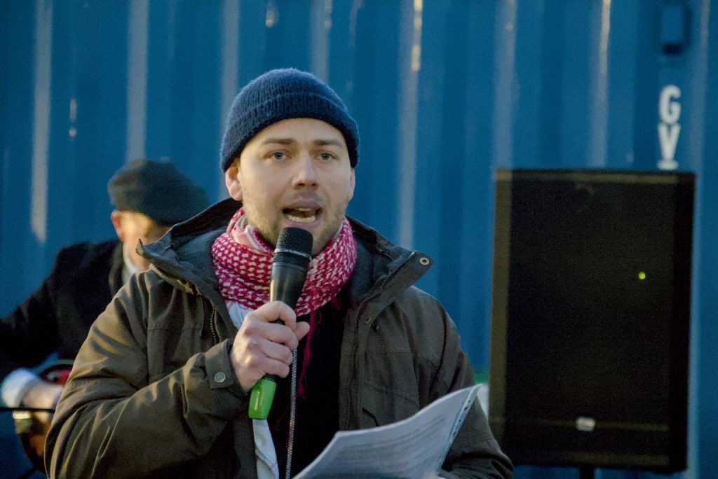Brian Pagels Kristensen er VVS’er og med i Aktionsgruppen mod social dumping. Han deltog sammen med mange kolleger i dagens aktion og holdt tale til de mange fremmødte.