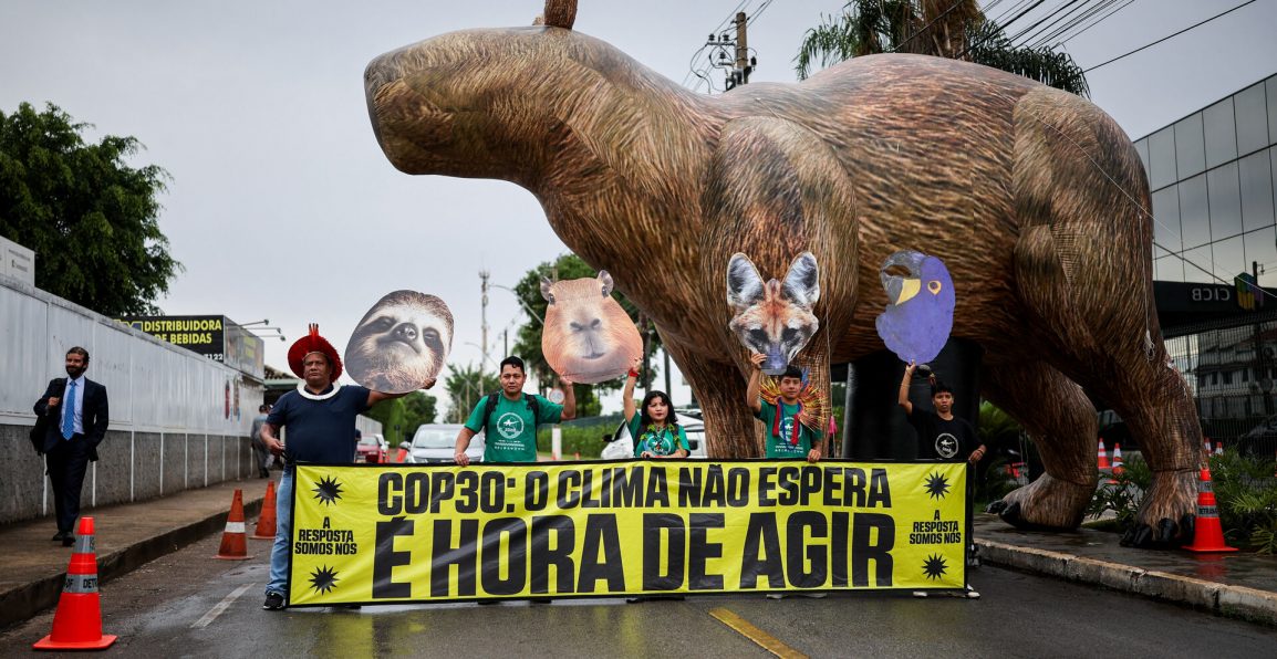 Fredsaktivister med faner, banner og instrumenter marcherede mod Storbritanniens ambassade i København den 22. marts.