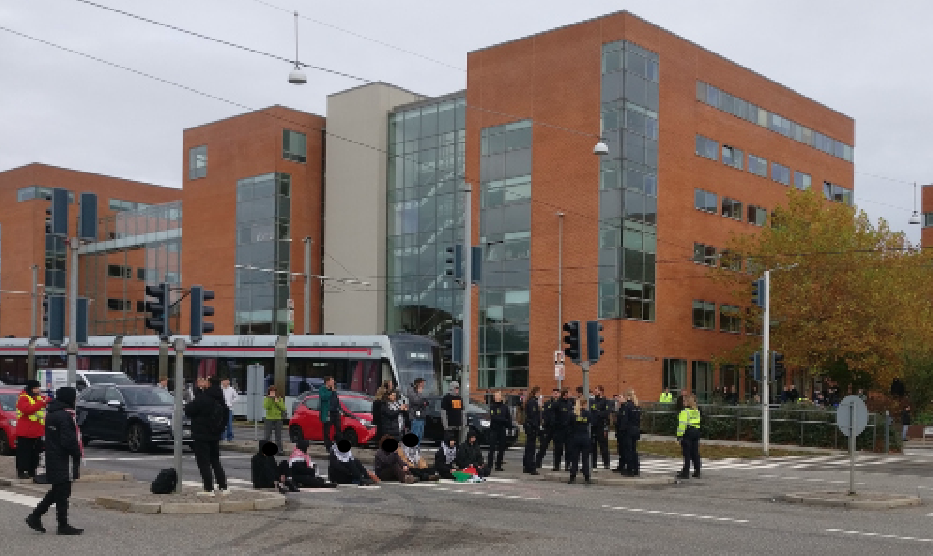 En række aktivister gennemførte tirsdag middag en blokade i Aarhus. Blokaden fandt sted ved krydset mellem Ringvejen og Randersvej, en af de befærdede indfaldsveje.