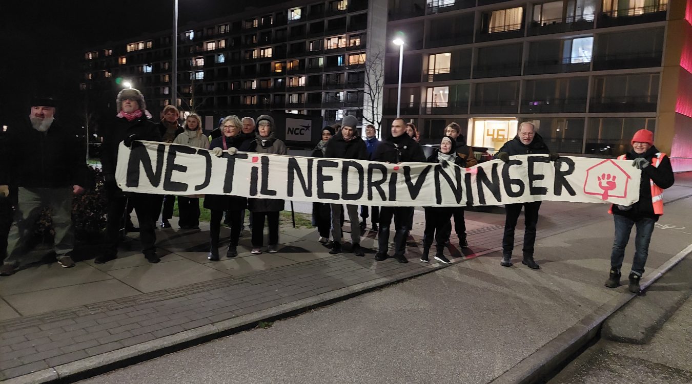 “Vores hjem er ik’ til salg! Nej til nedrivninger!”.