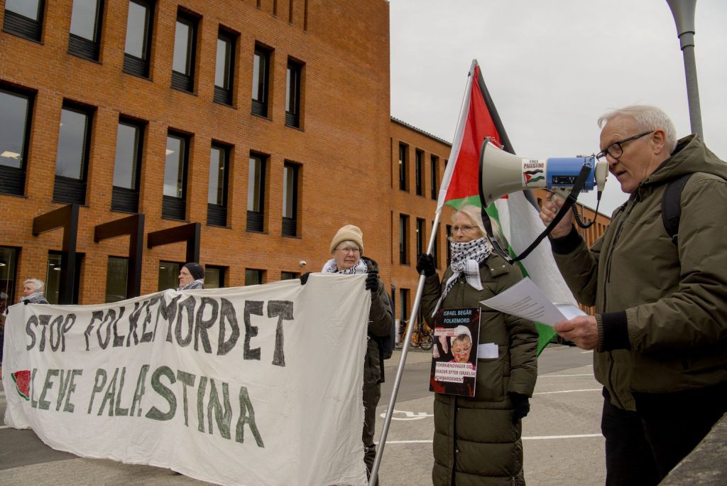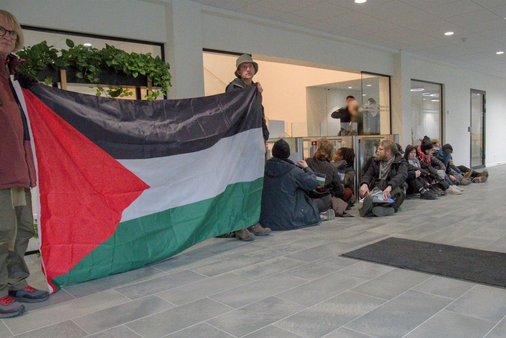 Tirsdag morgen gennemførte en større gruppe aktivister en demonstration og blokade mod pensionsfonden ATP's hovedkontor i Hillerød i protest mod investeringer i våbenfabrikker, der støtter folkedrabet i Gaza.