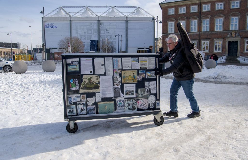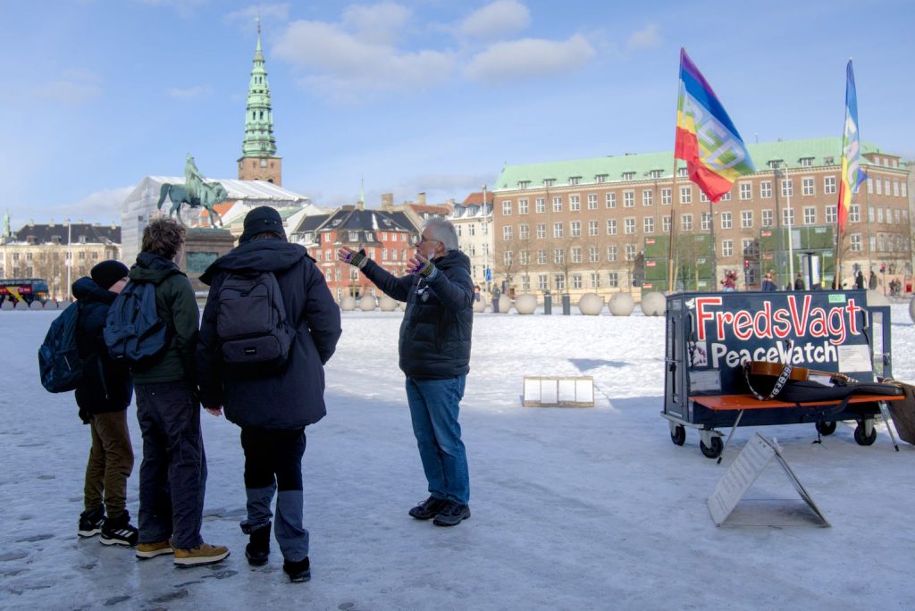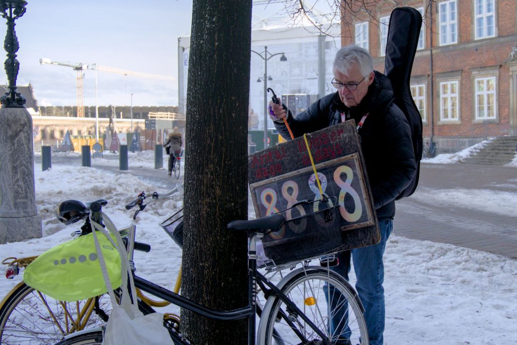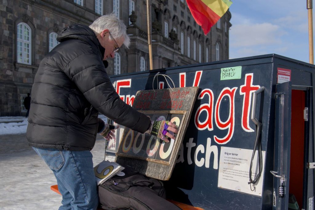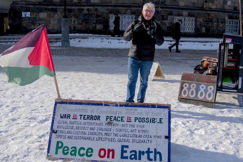 På Christiansborg Slotsplads har fredsvagter stået hver dag siden oktober 2001. Arbejderen fulgte Kristian Svendsen gennem en vinterdag, hvor vagten rundede 8888 dage.