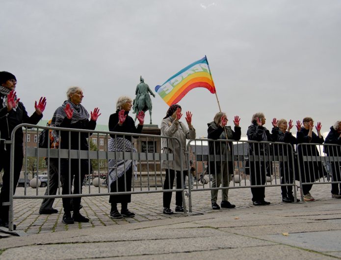 I København og Aarhus har aktivister tilsluttet sig den internationale kampagne i Mask Off Maersk siden i sommers. Det internationale hovedkvarter for rederigiganten ligger på Esplanaden i København, der også har været mål for en række demonstrationer, happenings og blokader det sidste års tid. Alt sammen i protest mod dansk støtte til Israels folkemord.