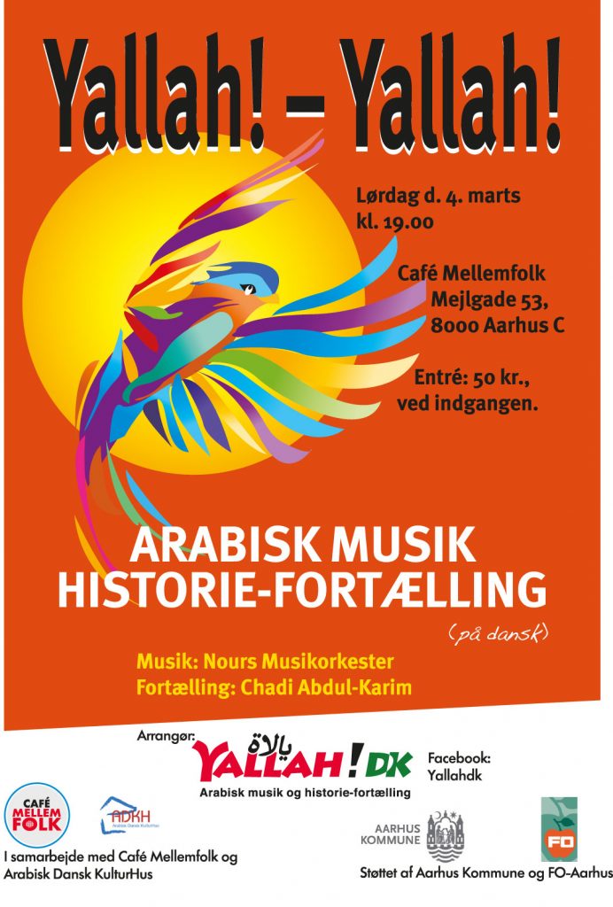 Det bliver en unik kulturoplevelse, når Yallah.dk byder velkommen til en aften med: Arabisk musik og historiefortælling med professionelle arabiske og danske musikere og historiefortæller.