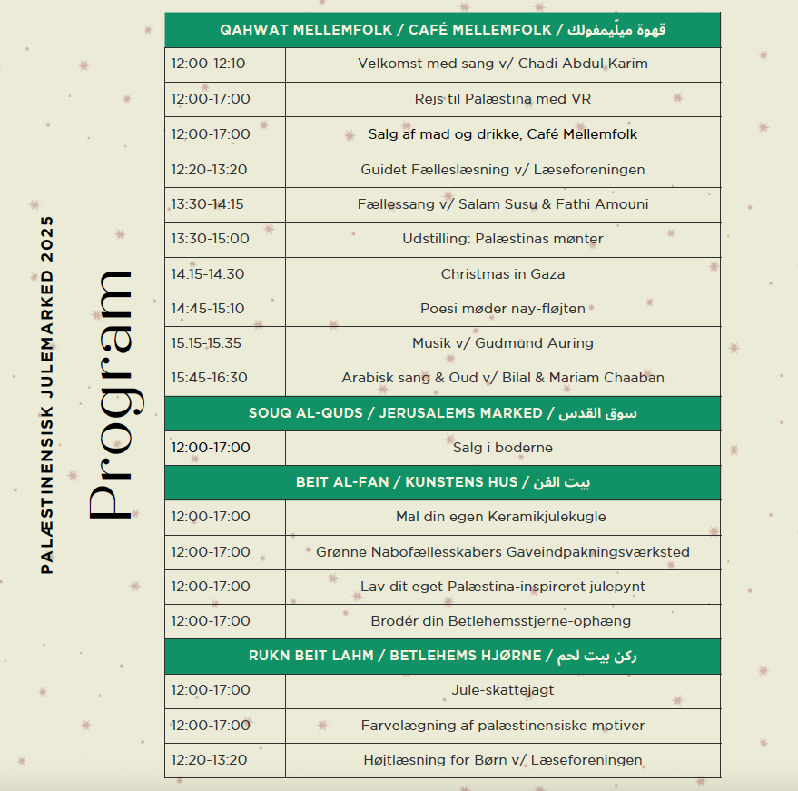 Palæstinensisk Julemarked er arrangeret af Ajyal i samarbejde med Café Mellemfolk i Aarhus.