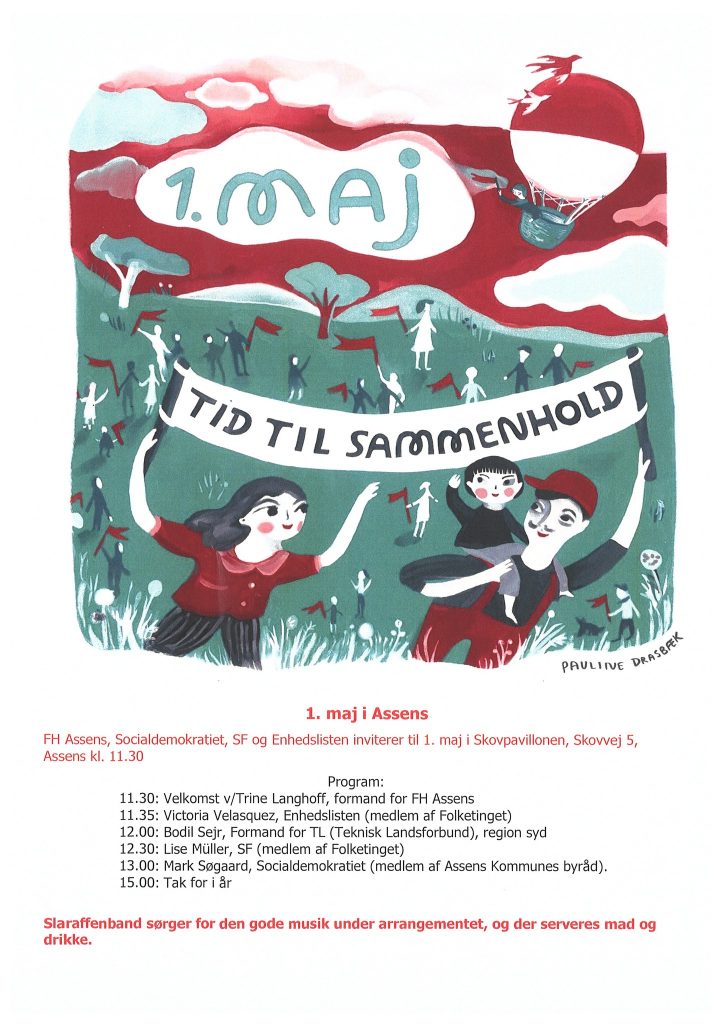 FH Assens, Socialdemokratiet, SF og Enhedslisten inviterer til 1. maj i Skovpavillonen.
