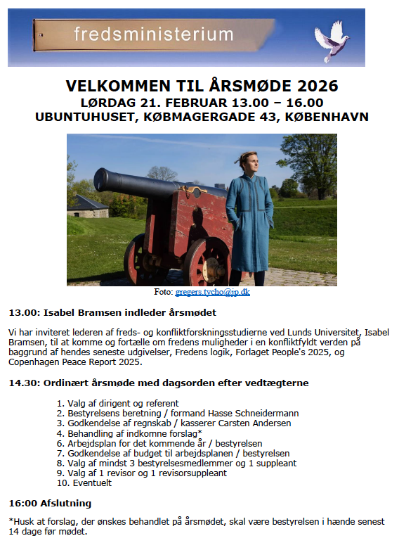 Alle interesserede er velkommen til at høre om fredens muligheder i en konfliktfyldt verden. Læs mere herunder.