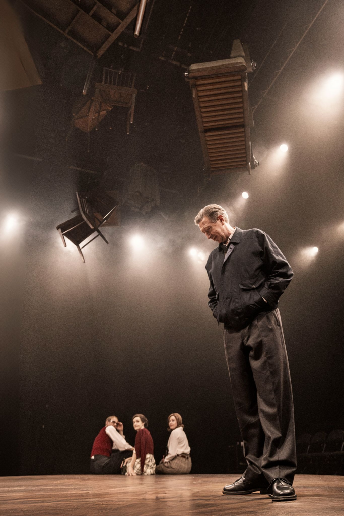 Scenen er rund, placeret med publikum rundt om. Alene i rummet står Karl Aage, ældre og tøvende.