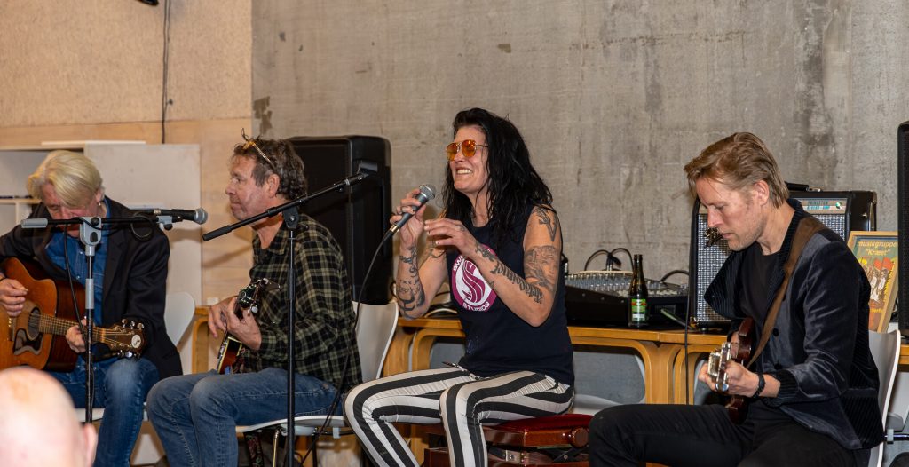 – Vi har et sceneshow, som vi har arbejdet en del på, grinte Tania efter at have skramlet noget rundt med mikrofon og stol. “Det er meget autentisk”, lød det fra salen, der var helt med på Kræets ferme musikalske drive og taktfast klappede med i mødet med Palle Klok, guitar og sang, Claus Bjørn, guitar, Assi Roar, bas. Og Tania selv med heftig udstråling og stor stemme. Kun trommeslager Flemming Rothaus savnedes.