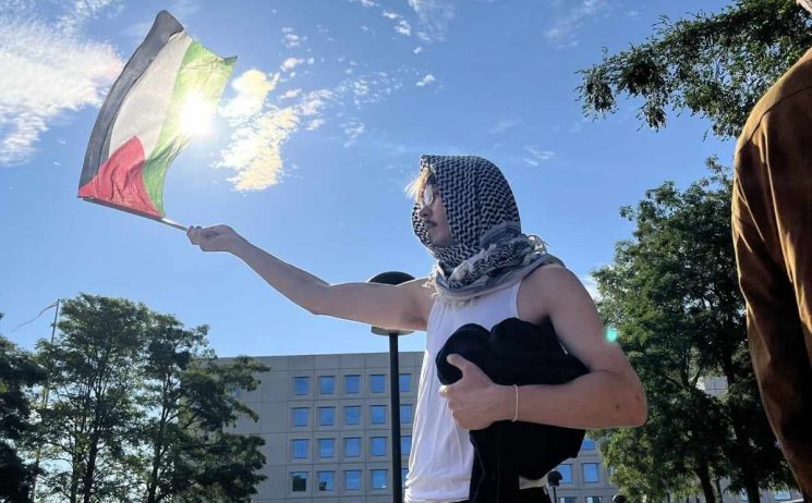 Mærsk stiller 19 containerskibe til rådighed for at USA's militær kan sejle våben, ammunition og andet militært udstyr til krige og konflikter overalt i verden - heriblandt også Israel. I morges blokerede aktivister Mærsk' hovedkvarter for at kræve et stop for rederigigantens involvering i folkemordet på palæstinenserne.