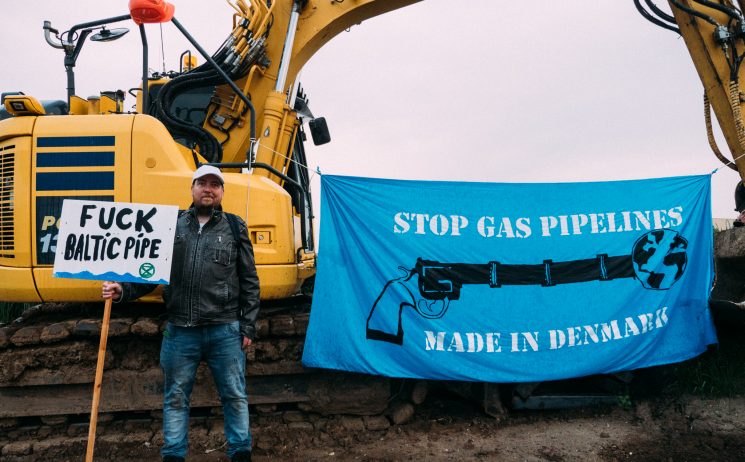 Aktivister fra Baltic Pipe Nej Tak lænkede sig mandag morgen fast til store maskiner på to byggepladser, der er i gang med at opføre gasledning.