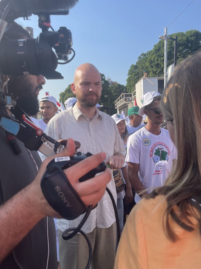 Staten Pará har ingen affaldsbearbejdelse, og de er ved at have fyldt deres nuværende affaldsplads op. På en COP, hvor de nærmest praler med inklusion af oprindelige folk, går det op for mig, at det hele er politisk spin. Guvernøren, Helder Barbalho, vil dumpe affaldet på de indfødtes land. Han vil samle kæmpe bjerge af skrald fra flere millioner indbyggere og smide det her, hvilket uden tvivl vil forgifte deres jord og den flod, som i generationer har givet dem liv. Den flod som deres børn leger i året rundt.