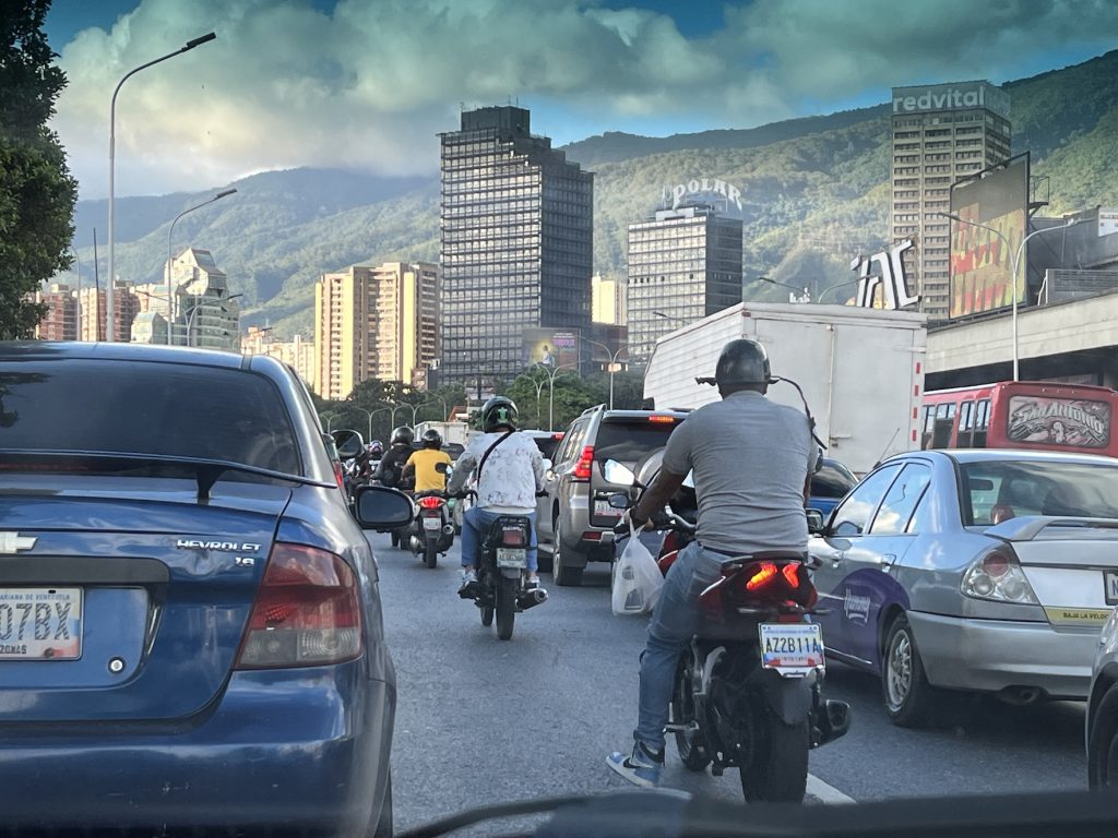 Biler og motorcykler kører ned ad gaderne, butikkerne er åbne, og der er travlhed i butikkerne op til jul. I betragtning af hvor lave lønningerne er i Venezuela, kan man undre sig over, hvordan folk har råd til at handle i butikkerne, men det vender vi tilbage til.